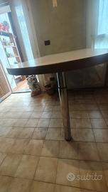 il tavolo e fissato al muro su un lato corto, con gamba regolabile.