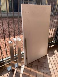 Tavolo a penisola in laminato bianco, si aggancia al muro. Con due gambe in acciaio. Completo di viti.