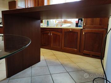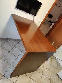 Tavolo penisola in legno, finitura ciliegio, dimensioni 140 x 80 cm, altezza da terra 105 cm, spessore del legno 5 cm, in ottime condizioni, completo di staffe per fissaggio a muro.