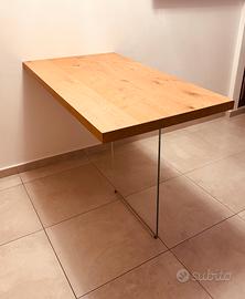 Tavolo Penisola in Rovere Nodato con base in Vetro Temperato di Veneta Cucine. Dimensioni: 140x75x87h