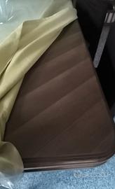 tavolo composto da due pezzi, legno base legno. lungo 4,5 X1,3 . per 20 22 persone