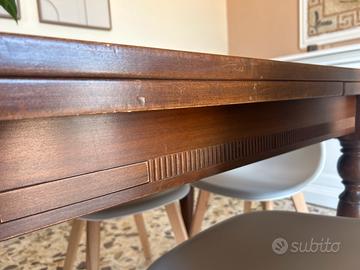 Tavolo in legno scuro Chiuso cm 170 Con aggiunte di 40cm l’una. In totale arriva a 250cm Condizioni buone, un po rovinati sulla parte finale i piedi del tavolo e qualche graffio Ritiro solo a domicilio (no spedizione), da portare per le scale del palazzo perche non entra in ascensore. 7 piani. Pagamento in contanti