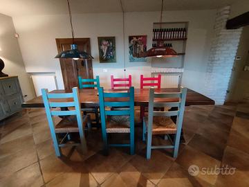 -Le sedie: Sei sedie rustiche in legno con fondino in paglia. In ottimo stato. prezzo = 75 a sedia