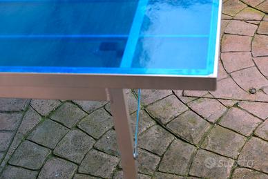 In alluminio e fibra di vetro. Ultimi 2 pezzi disponibili nuovissimi (inusati). Misure: piano 150 x 100, altezza da terra: 85 cm. (più alti di quelli mediamente in circolazione).
