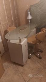 Vendo tavolo per onicotecnica con base in vetro, 2 sedie e lampada inclusa. Il tavolo è provvisto di due prese di corrente laterali. Prezzo trattabile 400€ Contattare su whatsapp, Annamaria