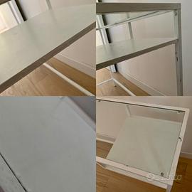 Tavolo/ consolle con piano in vetro, misure: altezza 74cm; larghezza 100 cm; profondità 36 cm. Era di colore nero ed è stato ridipinto di bianco per un effetto shabby (vedasi foto).