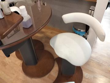 Vendo tavolo da estetista per ricostruzione unghie in legno di noce e piano in vetro con 2 cassetti e sgabelli in pelle bianca,in ottime condizioni!!