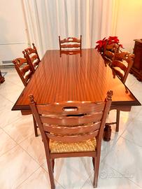 Tavolo per sala da pranzo in vero legno 6/8 posti con 6 sedie impagliate. Il tavolo è in ottimo stato. Smontaggio e ritiro a carico dell'acquirente. Prezzo trattabile. Non si esegue spedizione