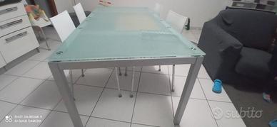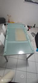 tavolo in vetro temperato,opaco,con allungamento centrale in legno(a scomparsa).