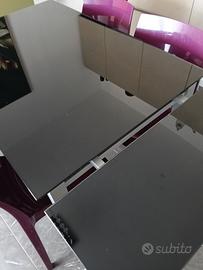 tavolo come nuovo in vetro nero, gambe in acciaio ,allungabile cm 110x75, apertura 170x75. possibilità di apertura parziale. disponibile subito.