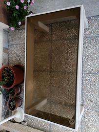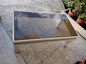 Tavolo per salotto legno cristallo in buono stato. Misura cm 100x55x40. Ha il vetro color fumé e il legno di colore bianco. È un modello vintage anni 70-80 ancora in buono stato di conservazione. Consegna a mano.
