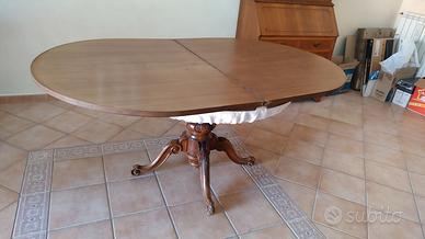 Vendo tavolo rotondo da soggiorno in stile classico, diametro 110 cm. Ottimamente conservato, è dotato di accessorio che ne permette la trasformazione in tavolo ovale con lunghezza di circa 190 cm. Ritiro a carico dell'acquirente a Bracciano (RM).