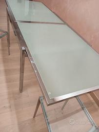 Vendesi tavolo in acciaio e vetro temperato lunghezza cm 120 x 90 allungabile a cm 240