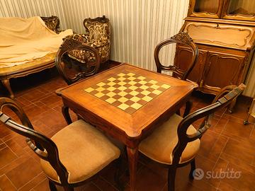 tavolo da gioco con ripiano ribaltabile per scacchi i poker comprensivo di quattro sedie imbottite in velluto