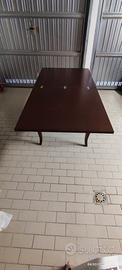 Tavolo da pranzo quadrato allungabile in stile arte povera, realizzato in legno con finitura color noce.