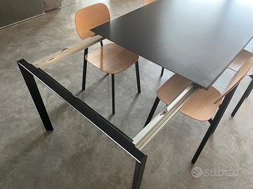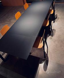 Vendo Tavolo come nuovo della Pianca modello Soffio da 240x100 allungabile fino a 300 laccato opaco colore antracite + 6 sedie Point modello Tata con struttura i metallo opaco antracite e seduta + schienale in rovere naturale.