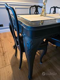 vendo tavolo con 6 sedie stile barocco colore antracite...piano vetro....con 6 sedie legno sedile ecocuoio.per amatori