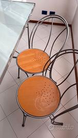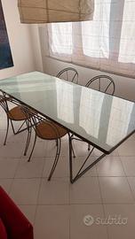 Tavolo piano in vetro + 4 sedie metallo e legno