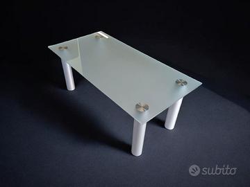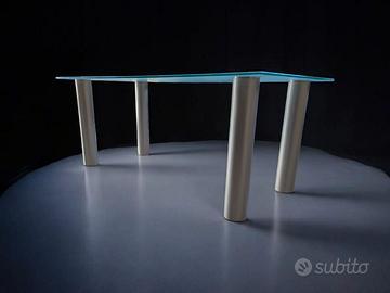 Tavolo con il piano in Vetro satinato e gambe a cilindro in alluminio. Misura del piano 240cm x 120cm Condizioni ottime. Per qualsiasi informazione contattatemi al 3403341898