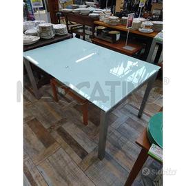 TAVOLO PIANO VETRO CON DUE PROLUNGHE E GAMBE CROMATE 140 X 90 ALTEZZA 75 CM OTTIME CONDIZIONI