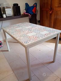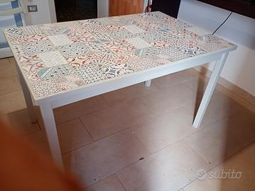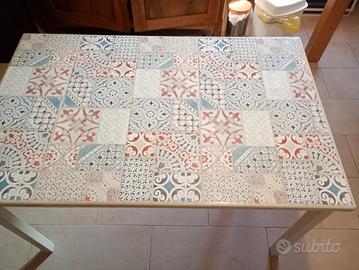 tavolo in legno piastrellato in ceramica misure 122cm lunghezza x78 cm larghezza x74 cm di altezza. in ottimo stato