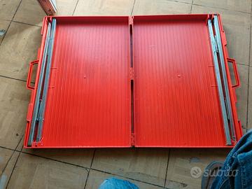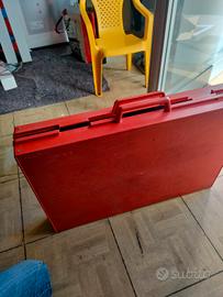 Tavolo pieghevole a valigetta Gio'style vintage. Meccanismi mobili delle gambe in ottimo stato, sta chiuso tenendo le maniglie come da foto (non ha calamite o bloccaggi, per intenderci).