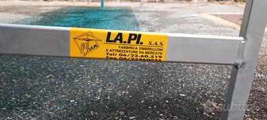 Marca Lapi nr 3 tavoli professionali piegabili 200×100 a 80 Euro cadauno e nr 2 tavoli piegabili 200×80 a 70 Euro cadauno. Altezza dei tavoli 75 cm. Superficie di appoggio superiore in plexiglas. Condizioni ottime. Nessun segno di ossido o ruggine. Utilizzati 5 volte in fiere al coperto. Disponibile anche un ulteriore tavolo con due ripiani per piccoli accessori.