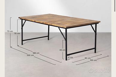 Tavolo da pranzo rettangolare 200x100 cm pieghevole in legno di mango e ferro.