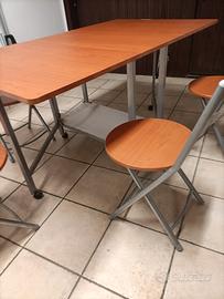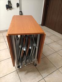 Tavolo 6/8 persone pieghevole 90x40cm da chiuso, e 90x156cm da aperto, incluse n.4 sedie pieghevoli che vengono alloggiate all'interno del tavolo ottimo per chi ha, poco spazio.