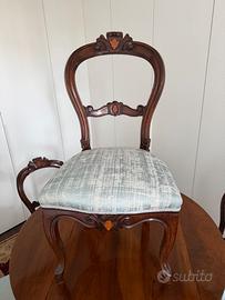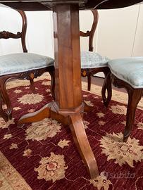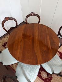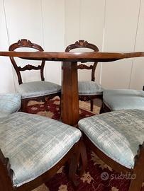 Set tavolo rotondo in legno + sei sedie. * Tavolo pieghevole in legno, il piano del tavolo ha una piccola fessura nel legno e necessita di intervento. * la seduta della sedia è stata completamente rifoderata con un tessuto di alta qualità Rubelli. Misure tavolo: Piano: 103x103cm Altezza: 80cm Misure sedie: Seduta: 45x45cm Altezza (schienale + gambe): 90cm ATTENZIONE: - Non faccio trasloco; - Luogo di ritiro: Piazza Vecchia - Mira (VE)