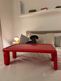 Tavolino pieghevole originale Biesse, iconico esempio di design italiano anni ’70 con una forte impronta Space Age / Pop. Realizzato interamente in plastica stampata di colore rosso brillante, si distingue per le linee morbide, continue e funzionali, tipiche del design radicale e domestico di quel periodo. La forma compatta e le gambe pieghevoli integrate lo rendono pratico, essenziale e visivamente molto riconoscibile. Il piano leggermente incassato e la struttura monoblocco esprimono una chiara attenzione all’uso quotidiano, senza rinunciare a un’estetica decisa e contemporanea ancora oggi. Ideale come tavolino da caffè, da colazione, da divano o come oggetto decorativo in interni moderni o vintage. 🟥 Condizioni Ottimo stato e poco utilizzato. Completo di scatola originale d’epoca, con normali segni del tempo sulla confezione Tavolino in eccellenti condizioni estetiche e strutturali 📐 Dimensioni (circa) Lunghezza: 60 cm Profondità: 35 cm Altezza: 23 cm 🏭 Il marchio Biesse Biesse è un marchio italiano fondato nel 1969, noto a livello internazionale per la qualità progettuale e produttiva. Negli anni ’60 e ’70 l’azienda ha affiancato alla produzione industriale una linea di oggetti per la casa in plastica, oggi molto ricercati, che riflettono perfettamente lo spirito innovativo e sperimentale del design italiano dell’epoca. Questi oggetti rappresentano un periodo in cui funzionalità, colore e nuove tecnologie produttive si incontravano per ridefinire l’arredo domestico. ✨ Un pezzo autentico di design vintage italiano, raro da trovare nuovo con scatola originale, perfetto per collezionisti, appassionati di design Space Age o per chi desidera un elemento iconico e senza tempo.
