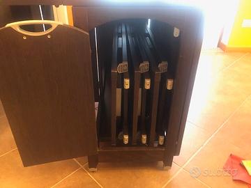 Vendo tavolo pieghevole Calligars, completo di 8 sedie pieghevoli che si possono riposizionare all`interno del tavolo, ottimo stato con qualche segno di utilizzo.