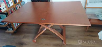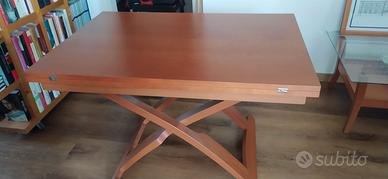 Tavolo trasformabile Calligaris in legno colore ciliegio, si trasforma da tavolo da pranzo a tavolino per salotto. Chiuso 105 x70,altezza 38 cm. Aperto 105x140 . 4 altezze da abbassato a sollevato. Altezza max 73 cm. Come nuovo. Prezzo € 950,00.