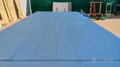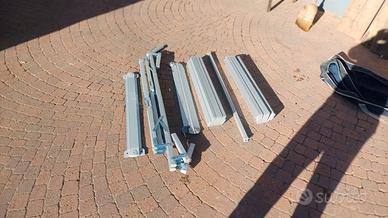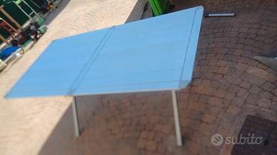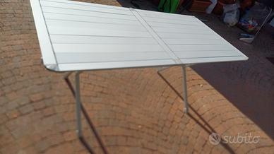 Tavolo con piano tapparelle in alluminio 160x80 h72, peso 9,6kg, imballo 118x20x20. Struttura in alluminio ed acciaio satibato. Costo nuovo 280€. Usato pochissimo.