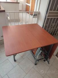 Vendo tavolo richiudibile con 4 sedie pieghevoli ideale per mini appartamento o esterno. Misure chiuso 40 x 90 Misure mezzo aperto 100 x 90 Misure tutto aperto 158 x 90 Ritiro a mano in loco.