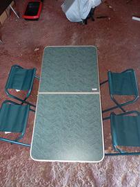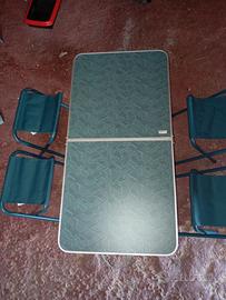 Tavolo 120x60 pieghevole a valigetta, in alluminio con 4 sedie.
