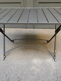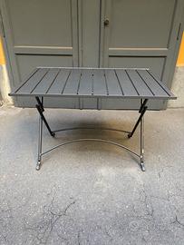 Tavolo da esterno pieghevole in metallo (probabilmente ferro verniciato), colore grigio antracite. Ideale per balcone, giardino o terrazzo. Struttura solida e stabile, facile da richiudere e riporre quando non utilizzato. Dimensioni: - Lunghezza: 107 cm - Larghezza: 68 cm - Altezza: 71 cm Condizioni molto buone: - nessun danno strutturale - solo lievi segni d’uso sulla superficie Design semplice e moderno, adatto a qualsiasi spazio outdoor.