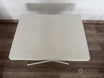 Tavolo pieghevole in plastica rigida con gambe in metallo incrociate, dotato di doppia posizione per l'altezza: 53 cm o 63 cm, ideale per adattarsi a diverse esigenze (bambini, attività da seduti, esposizione). Piano rettangolare da 60x80 cm, resistente e facile da pulire.