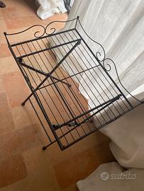 Questo è un tavolo pieghevole in ferro battuto. È un mobile versatile che può essere utilizzato sia all'interno che all'esterno come tavolino, supporto per piante o vassoio da portata.