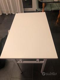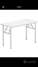 Vendo tavolo/scrivania bianco, legno e metallo ,robusto e stabile, richiudibile con meccanismo perfetto. Vendo per inutilizzo,usato tre volte. Misure : lunghezza 100cm, profondità 60cm e h 75cm Prezzo non trattabile Ritiro sul posto, non spedisco