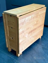 Vendo tavolo pieghevole Ikea modello Norden (valore a nuovo 229€) in legno pieno, molto solido e versatile, presenta 6 ampi cassetti, adatto per 6 persone comode o massimo 8.