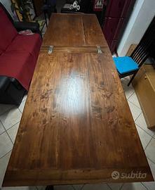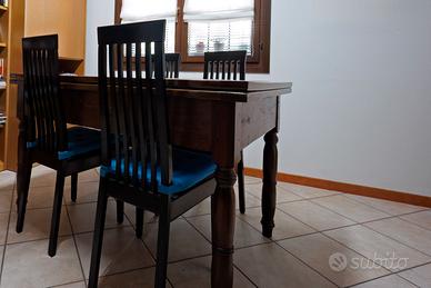 avolo Piemontese a libro 1850/1870 legno noce/salice/pioppo perfettamente restaurato 91X135X84. Praticamente il tavolo si raddoppia in lunghezza a cm 270 14/16 posti , condizioni ottime classica usura e crepe del legno, sotto il piano del tavolo c'è un cassetto che si apre a scorrimento come da foto. Da arredo in taverna o salone.Visibile presso la mia abitazione in prov di Bologna. In dotazione 4 sedie moderne Calligaris Chicago base pelle laccate nere schienale alto. Non spedisco visto la mole. No offerte ridicole