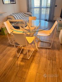 Tavolo in vetro bontempi più 4 sedie in pelle bianca Midj