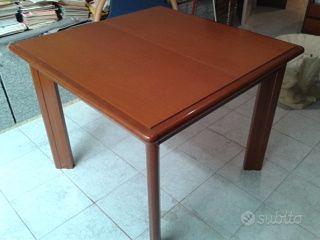 Offro tavolo con gambe smontabili allungabile color ciliegio da 1 mt. X 1 mt a 1 mt x 1,40 più 6 sedie imbottite. Ritiro solo a mano.