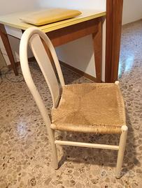 Seduta: in paglia/corda intrecciata a mano, ancora molto tipica della tradizione italiana.