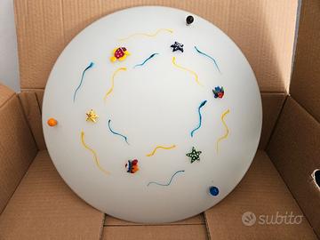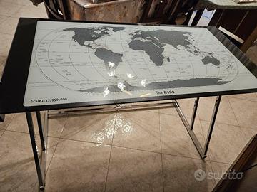 tavolo alluminio più pia no in vetro . plafoniera per cameretta