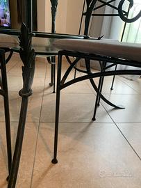 Tavolo ovale in ferro battuto e vetro con portafiori . Misure 140X125 Ottimo stato Vendo per cambio arredamento