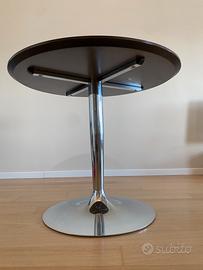 Tavolo 90 cm come in foto, usato ma tenuto molto bene. Base in acciaio cromato. Il legno presenta alcuni piccoli difetti “di serie” (è sempre stato cosi) e un piccolissimo bollo (entrambi in foto). Prediligo ritiro a mano. Spedizione da confordare a carico dell’acquirente (intorno ai 100€)