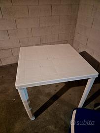 tavolo quadrato bianco in plastica circa 70/80cm x 70/80 cm. 4 sedie come da foto