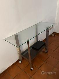 Tavolo porta tv in vetro, con le sue ruote originali.